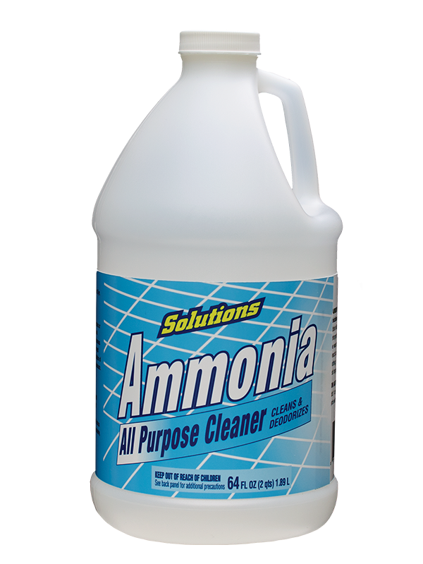 Solutions Ammonia All Purpose Cleaner is a strong, alkaline household cleaner used for tough jobs like cutting grease, removing soap scum, hard water spots, and odors from surfaces like floors, tiles, sinks, windows, and stainless steel
